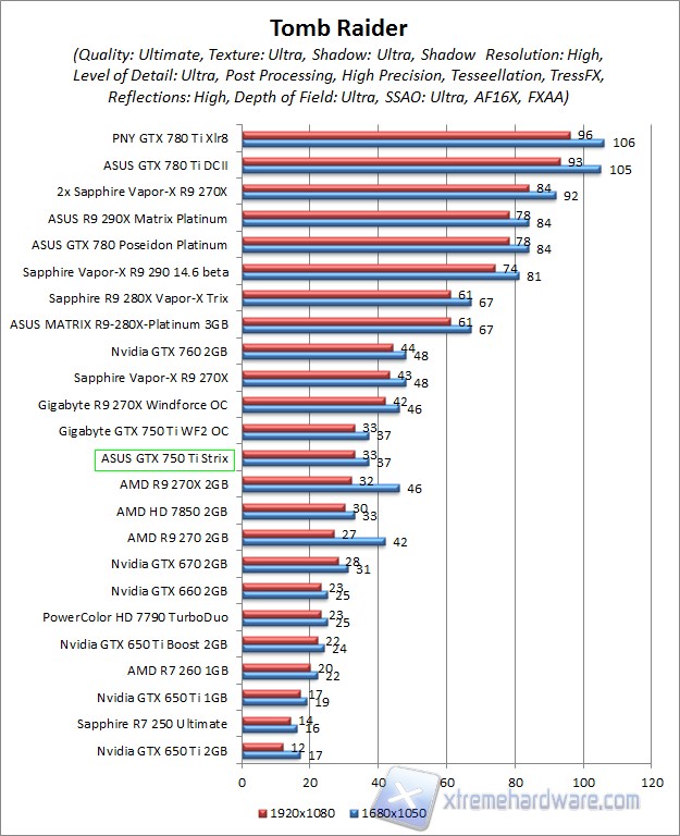 ASUS GTX 750 Ti OC Strix, silenziosità massima - Tomb Raider